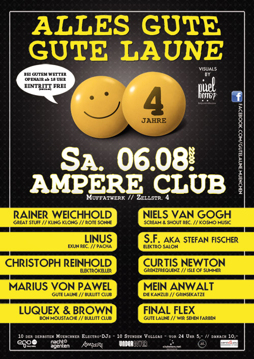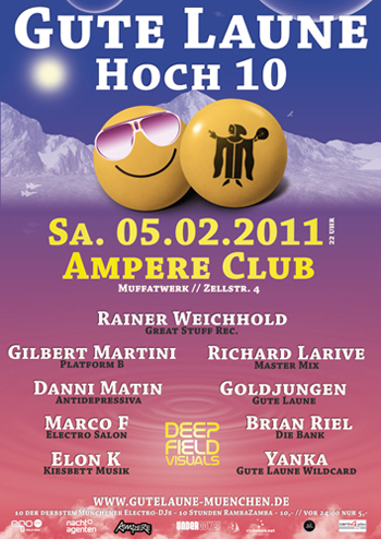 >>>VIDEOSGUTE LAUNE HOCH 10 // 03.09.2016 // AMPERE CLUB ![]() Nachtagenten --> Lineup GUTE LAUNE HOCH 10 // 04.06.2016 // AMPERE CLUB ![]() Nachtagenten --> Lineup GUTE LAUNE HOCH 10 // 07.05.2016 // AMPERE CLUB ![]() Nachtagenten --> Lineup GUTE LAUNE HOCH 10 // 02.04.2016 // AMPERE CLUB ![]() Nachtagenten --> Lineup GUTE LAUNE HOCH 10 // 05.03.2016 // AMPERE CLUB ![]() Nachtagenten --> Lineup GUTE LAUNE HOCH 10 // 13.02.2016 // AMPERE CLUB ![]() Nachtagenten --> Lineup GUTE LAUNE HOCH 10 // 05.01.2016 // AMPERE CLUB ![]() Nachtagenten --> Lineup GUTE LAUNE HOCH 10 // 05.12.2015 // AMPERE CLUB ![]() Isarszene Nachtagenten --> Lineup GUTE LAUNE HOCH 10 // 06.11.2015 // AMPERE CLUB ![]() Nachtagenten --> Lineup GUTE LAUNE HOCH 10 // 03.10.2015 // AMPERE CLUB ![]() Isarszene Nachtagenten --> Lineup GUTE LAUNE HOCH 10 // 05.09.2015 // AMPERE CLUB ![]() Isarszene Nachtagenten --> Lineup GUTE LAUNE HOCH 10 // 01.08.2015 // AMPERE CLUB ![]() Isarszene --> Lineup GUTE LAUNE HOCH 10 // 04.07.2015 // AMPERE CLUB ![]() Isarszene Nachtagenten --> Lineup GUTE LAUNE HOCH 10 // 06.06.2015 // AMPERE CLUB ![]() Isarszene --> Lineup GUTE LAUNE HOCH 10 // 02.05.2015 // AMPERE CLUB ![]() Nachtagenten Isarszene --> Lineup GUTE LAUNE HOCH 10 // 04.04.2015 // AMPERE CLUB ![]() Nachtagenten Isarszene --> Lineup GUTE LAUNE HOCH 10 // 07.03.2015 // AMPERE CLUB ![]() Nachtagenten Isarszene --> Lineup GUTE LAUNE HOCH 10 // 07.02.2015 // AMPERE CLUB ![]() Nachtagenten Isarszene --> Lineup GUTE LAUNE HOCH 10 // 03.01.2015 // AMPERE CLUB ![]() Nachtagenten Isarszene --> Lineup GUTE LAUNE HOCH 10 // 06.12.2014 // AMPERE CLUB ![]() Nachtagenten --> Lineup GUTE LAUNE HOCH 10 // 01.11.2014 // AMPERE CLUB ![]() Nachtagenten Isarszene --> Lineup GUTE LAUNE HOCH 10 // 04.10.2014 // AMPERE CLUB ![]() Nachtagenten --> Lineup GUTE LAUNE HOCH 10 // 06.09.2014 // AMPERE CLUB ![]() Nachtagenten Isarszene --> Lineup GUTE LAUNE HOCH 10 // 02.08.2014 // AMPERE CLUB ![]() Nachtagenten Isarszene --> Lineup GUTE LAUNE HOCH 10 // 05.07.2014 // AMPERE CLUB ![]() Nachtagenten Isarszene --> Lineup GUTE LAUNE HOCH 10 // 07.06.2014 // AMPERE CLUB ![]() Nachtagenten Isarszene --> Lineup GUTE LAUNE HOCH 10 // 03.05.2014 // AMPERE CLUB ![]() Nachtagenten Isarszene --> Lineup GUTE LAUNE HOCH 10 // 05.04.2014 // AMPERE CLUB ![]() Nachtagenten Isarszene --> Lineup GUTE LAUNE HOCH 10 // 08.03.2014 // AMPERE CLUB ![]() Nachtagenten Isarszene --> Lineup GUTE LAUNE HOCH 10 // 01.02.2014 // AMPERE CLUB ![]() Nachtagenten Isarszene --> Lineup GUTE LAUNE HOCH 10 // 04.01.2014 // AMPERE CLUB ![]() Nachtagenten Isarszene --> Lineup GUTE LAUNE HOCH 10 // 07.12.2013 // AMPERE CLUB ![]() Nachtagenten Isarszene --> Lineup GUTE LAUNE HOCH 10 // 05.10.2013 // AMPERE CLUB ![]() Nachtagenten Isarszene --> Lineup GUTE LAUNE HOCH 10 // 07.09.2013 // AMPERE CLUB ![]() Nachtagenten Isarszene --> Lineup GUTE LAUNE HOCH 10 // 03.08.2013 // AMPERE CLUB ![]() Nachtagenten Isarszene --> Lineup GUTE LAUNE HOCH 10 // 06.07.2013 // AMPERE CLUB ![]() Nachtagenten Isarszene --> Lineup GUTE LAUNE HOCH 10 // 01.06.2013 // AMPERE CLUB ![]() Nachtagenten Isarszene --> Lineup GUTE LAUNE HOCH 10 // 04.05.2013 // AMPERE CLUB ![]() Nachtagenten Isarszene --> Lineup GUTE LAUNE HOCH 10 // 06.04.2013 // AMPERE CLUB ![]() Nachtagenten Isarszene --> Lineup GUTE LAUNE HOCH 10 // 02.03.2013 // AMPERE CLUB ![]() Nachtagenten Isarszene --> Lineup GUTE LAUNE HOCH 10 // 02.02.2013 // AMPERE CLUB ![]() Nachtagenten Isarszene --> Lineup GUTE LAUNE WILDCARD-NIGHT // 05.01.2013 // AMPERE CLUB ![]() Isarszene --> Lineup GUTE LAUNE HOCH 10 // 01.12.2012 // AMPERE CLUB ![]() Nachtagenten Isarszene --> Lineup GUTE LAUNE HOCH 10 // 03.11.2012 // AMPERE CLUB ![]() Nachtagenten Isarszene --> Lineup GUTE LAUNE HOCH 10 // 06.10.2012 // AMPERE CLUB ![]() Nachtagenten Isarszene --> Lineup GUTE LAUNE HOCH 10 // 01.09.2012 // AMPERE CLUB ![]() Nachtagenten Isarszene --> Lineup 5 JAHRE GUTE LAUNE HOCH 10 // 04.08.2012 // AMPERE CLUB ![]() Nachtagenten Isarszene --> Lineup GUTE LAUNE HOCH 10 // 07.07.2012 // AMPERE CLUB ![]() Nachtagenten Virtualnights --> Lineup GUTE LAUNE HOCH 10 // 02.06.2012 // AMPERE CLUB ![]() Nachtagenten Isarszene Virtualnights --> Lineup GUTE LAUNE HOCH 10 // 05.05.2012 // AMPERE CLUB ![]() Isarszene Virtualnights --> Lineup GUTE LAUNE HOCH 10 // 07.04.2012 // AMPERE CLUB ![]() Nachtagenten --> Lineup GUTE LAUNE HOCH 10 // 03.03.2012 // AMPERE CLUB ![]() Isarszene Nachtagenten --> Lineup GUTE LAUNE HOCH 10 // 04.02.2012 // AMPERE CLUB ![]() Isarszene Nachtagenten Virtualnights --> Lineup GUTE LAUNE WILDCARD-NIGHT // 07.01.2012 // AMPERE CLUB ![]() Isarszene Nachtagenten --> Lineup GUTE LAUNE HOCH 10 // 03.12.2011 // AMPERE CLUB ![]() --> Lineup GUTE LAUNE HOCH 10 // 05.11.2011 // AMPERE CLUB ![]() Clubstars Isarszene Nachtagenten --> Lineup GUTE LAUNE HOCH 10 // 01.10.2011 // AMPERE CLUB ![]() Nachtagenten --> Lineup GUTE LAUNE HOCH 10 // 03.09.2011 // AMPERE CLUB ![]() Isarszene Nachtagenten --> Lineup 4 JAHRE GUTE LAUNE HOCH 10 // 06.08.2011 // AMPERE CLUB ![]() Isarszene Nachtagenten Clubstars --> Lineup GUTE LAUNE HOCH 10 // 02.7.2011 // AMPERE CLUB ![]() Isarszene Nachtagenten Clubstars --> Lineup GUTE LAUNE HOCH 10 // 04.6.2011 // AMPERE CLUB ![]() Isarszene Nachtagenten Clubstars --> Lineup GUTE LAUNE HOCH 10 // 07.05.2011 // AMPERE CLUB ![]() Isarszene Nachtagenten Clubstars --> Lineup GUTE LAUNE HOCH 10 // 02.04.2011 // AMPERE CLUB ![]() Nachtagenten Clubstars --> Lineup GUTE LAUNE HOCH 10 // 12.03.2011 // AMPERE CLUB ![]() Isarszene Nachtagenten Clubstars --> Lineup GUTE LAUNE HOCH 10 // 05.02.2011 // AMPERE CLUB ![]() Isarszene Nachtagenten Clubstars Partygänger --> Lineup GUTE LAUNE WILDCARD NIGHT // 05.01.2011 // AMPERE CLUB ![]() Isarszene Nachtagenten Clubstars --> Lineup GUTE LAUNE HOCH 10 // 04.12.2010 // AMPERE CLUB ![]() Isarszene Nachtagenten Clubstars --> Lineup GUTE LAUNE HOCH 10 // 06.11.2010 // AMPERE CLUB ![]() Isarszene Nachtagenten --> Lineup GUTE LAUNE HOCH 10
